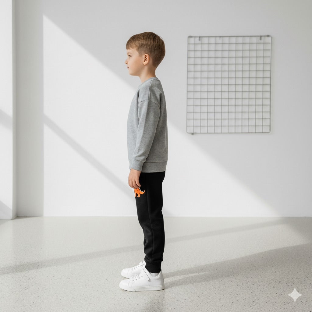 Product Name : Grey Big Orange Dinosor with Black pajama Kids track suit (RX-340)