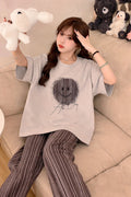 Grey Smiley printed Half sleeves T Shirt with brown lining trousers night suit (RX-402)