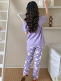 Lilac Sun Flowers Printed Half Sleeves Night Suit (RX-323)