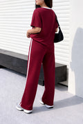 (New) Maroon with white round Neck night suit with White panel plazo pajama