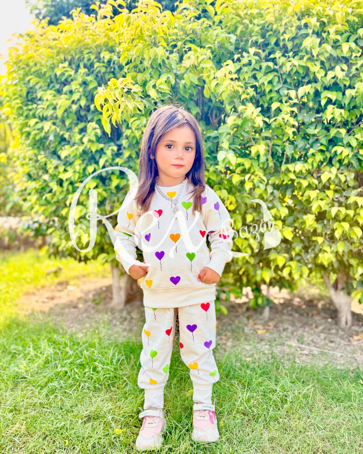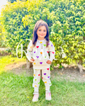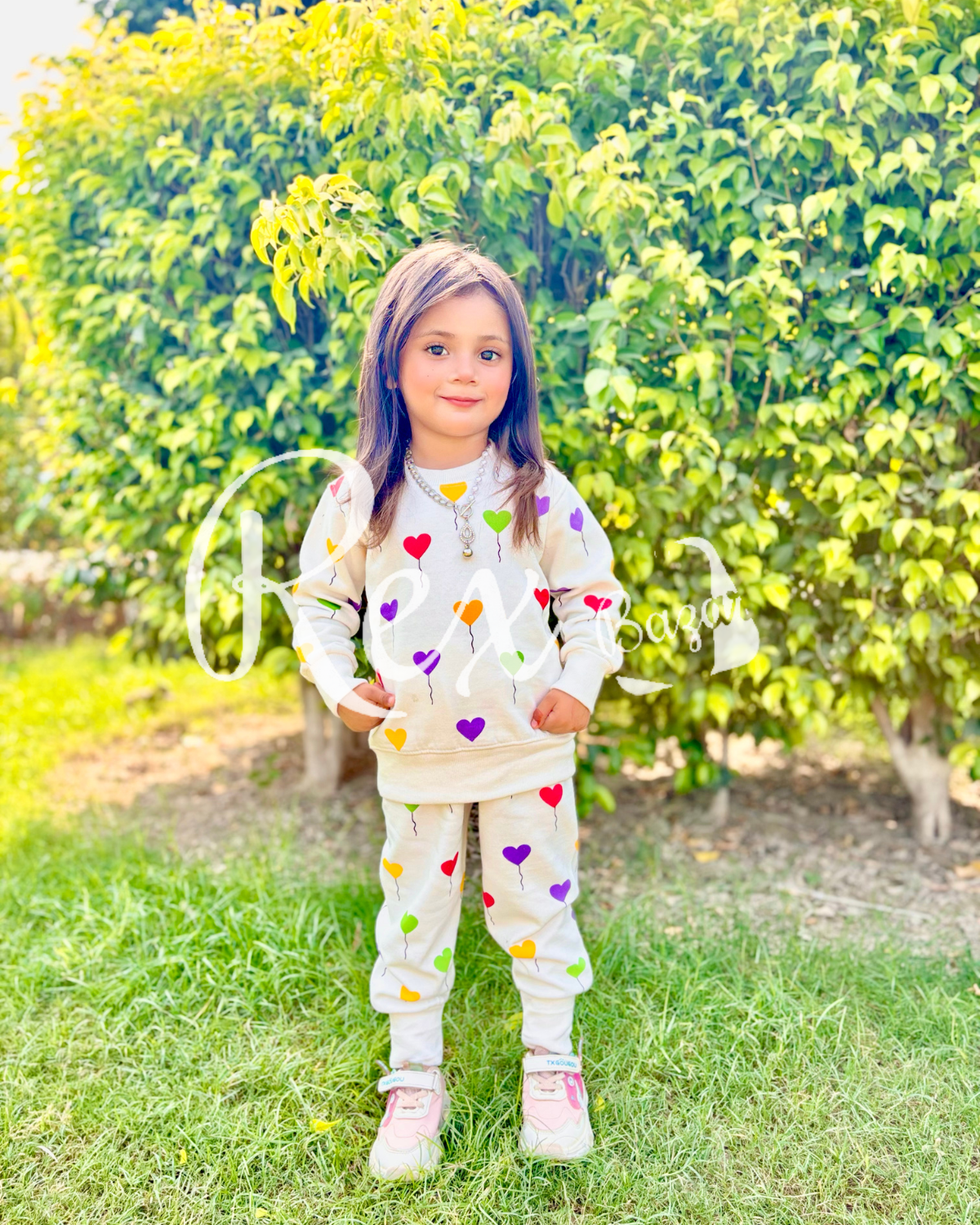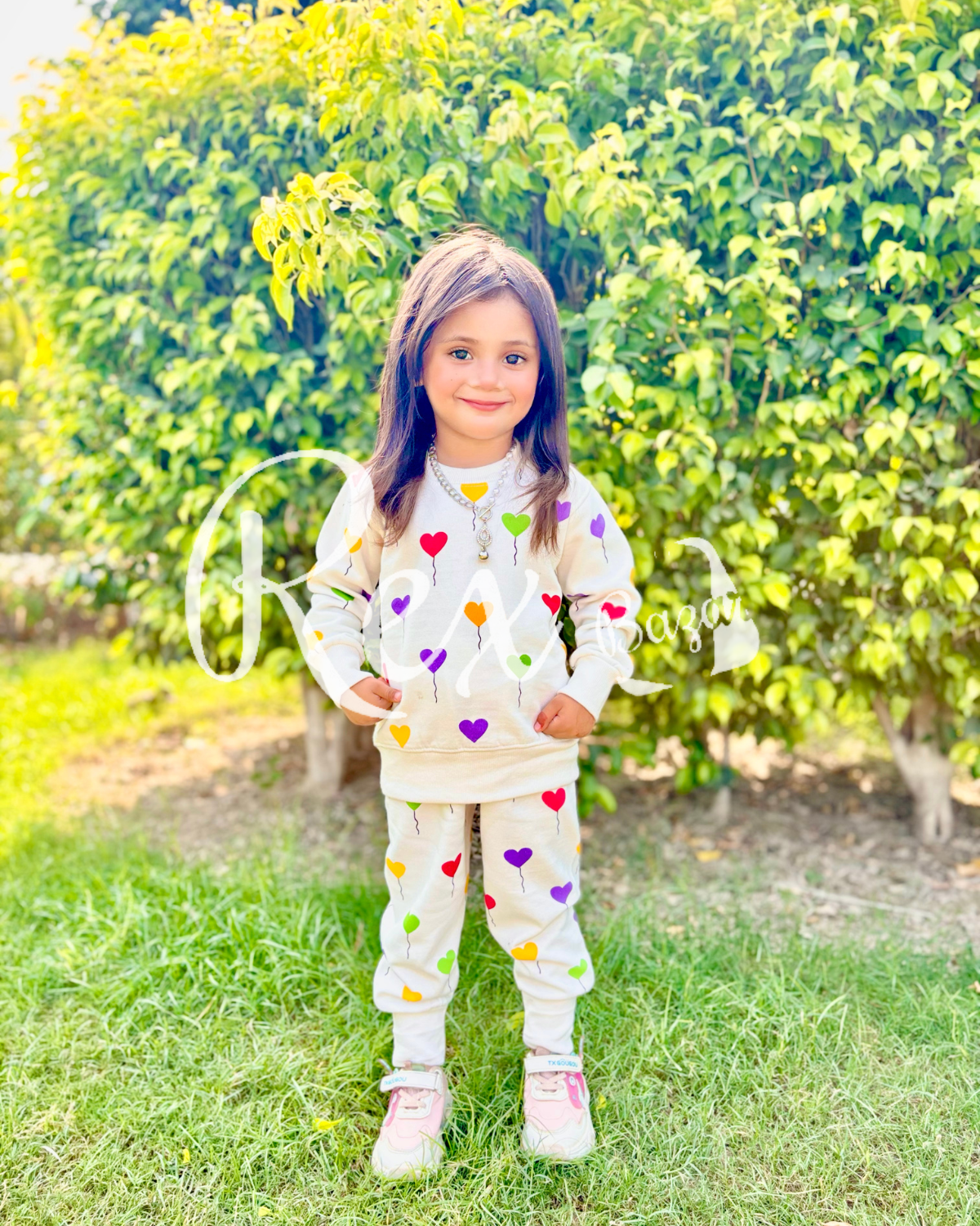 Off white All over Hearts Printed Sweatshirt with Matching trouser Kids track suit (RX-233)
