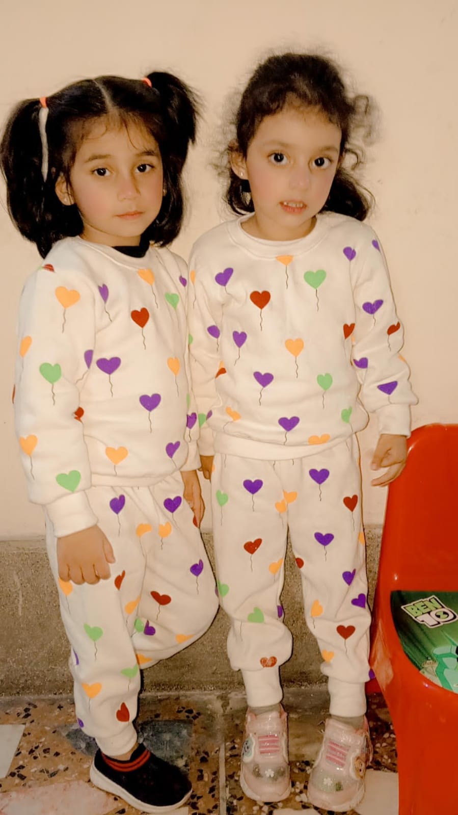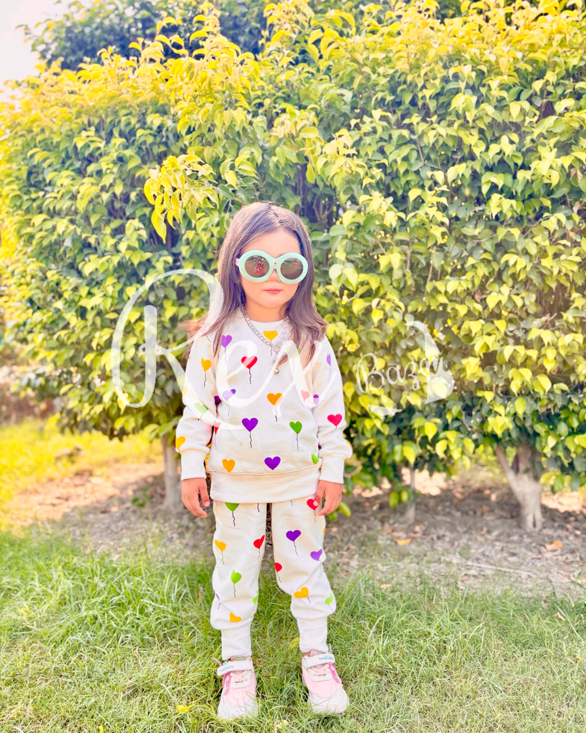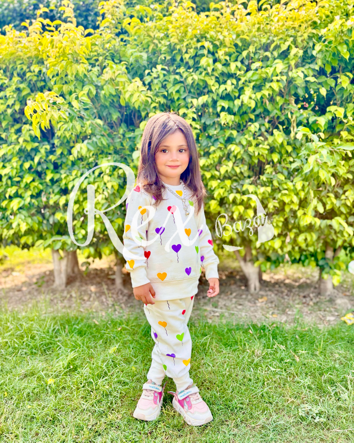 Off white All over Hearts Printed Sweatshirt with Matching trouser Kids track suit (RX-233)