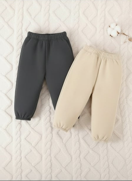 Product Name : Pack of 2 Plain Fleece Trousers For Kids (RX-357) (Charcoal Grey, Off White)