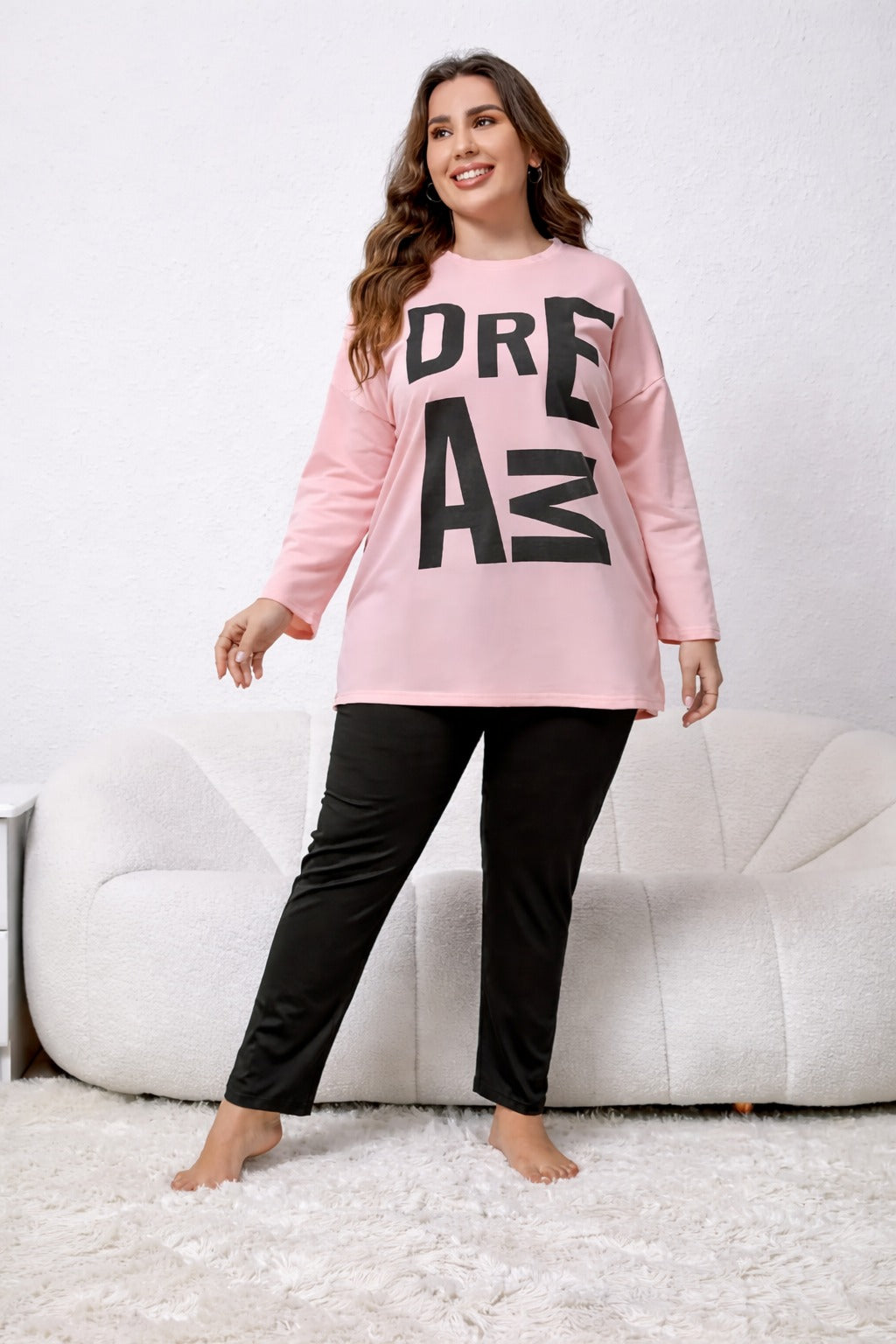 Pink Dreams long Shirt with black trouser night suit For her (RX-424)
