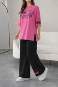 Shocking pink California Printed long Shirt with Pajama Half Sleeves Night Suit